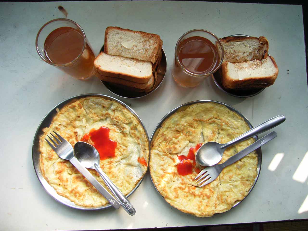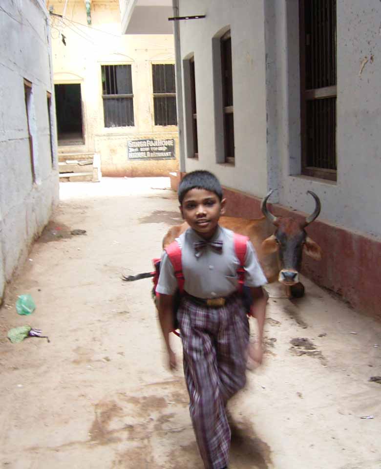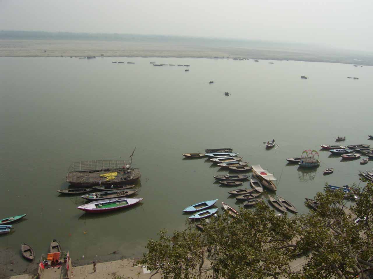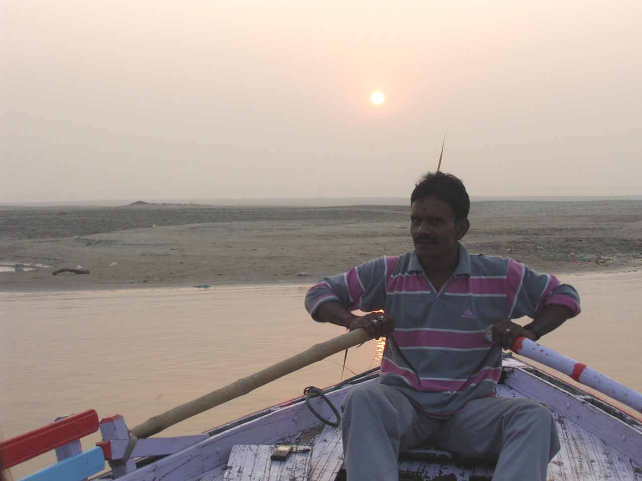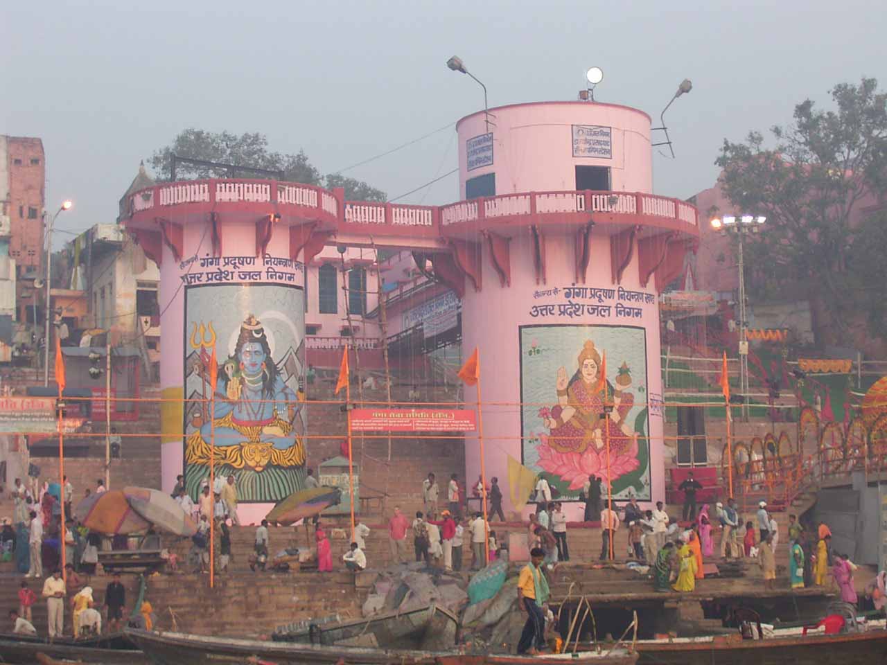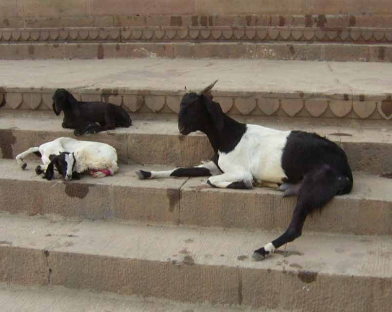 今日は、6時からボートに乗ってガンガーの沐浴を日本人4人で1時間一人50Rsで見る予定。他の二人は31歳の若い男性と若い女性1人。男性は、3週間の旅行でもうすぐ帰国。女性は、2007年の9月から世界一周。ベネズエラでバスで熟眠中に足の間に置いた荷物を全て盗まれパスポートだけ残り、大使館のないベネズエラで色々と伝を頼って一度日本に帰ったとのこと。インドへは、カトマンズから飛行機で。陸路は、インド/ネパールの国境は、いろいろと難癖をつけ、賄賂を要求されたりと大変で、バスで1日半かかるので飛行機でバラナシ入りしたとのこと。詳細は、Life goes on 三毛猫ぽちの世界くるりん旅。この後、スリランカで犬に噛まれて大変な目にあったようで...しかし、狂犬病は100%の致死率とは知らなかった...。ガードに行くと、昨日の午後とは違い多くの人が沐浴している。ボートに乗るために、岸の階段を降りるとインドおばさんに”靴を脱ぐように。”と言われる。異教徒が失礼しました。靴と靴下を脱いで、ボートへ。ガンガーの岸沿いにボートは進む。![]() ダシャーシュワメード・ガートで沐浴する人々 夕方になるとプージャーが行われる ガンガーの川岸は、真剣に沐浴している人々、洗濯をしている人、プージャーのようなことをしている人もいる。 う〜ん、なかなかすごい。これは、一度は見るべき。 ![]() ![]() 僕達のボート漕ぎ おとなしい日本人のようなインド人 20人近くを乗せて二人で漕ぐボートもいる 観光客を乗せたボートが、一杯いる。中には、20人くらい乗せて、二人で必死に漕いでいるボートもある。 ![]() ![]() ケーダール・ガートには、こんな人がいる ![]() ![]() 朝靄の向こうにガートが見える 砂州までもう少し 日の出が見える ダシャーシュワメード・ガートの次に大きい?ケーダール・ガートまで来るとボートは岸から離れ、ガートのある岸の対岸のなにもない砂州に向かう。 ここは、不浄の地らしくインド人は、行きたがらないの延髄妻が言う。全員、降りてそれぞれブラブラする。日本でこの砂州に動物の骨がある写真を見ていたので、想像していたが、意外となにもない砂州。日の出の太陽が砂州の向こう側に見える。ボート漕ぎが、水が溜まった所を指差して、日の出の写った水面と日の出を写すように促され写真を撮る。![]() ![]() ダシャーシュワメード・ガート 全景 ![]() しばらくすると、ボート漕ぎが ”火葬場に行くか?”と聞かれ、4人とも行きたいと答える。マニカルニカー・ガートの火葬場へ向かう。マニカルニカー・ガートは、ボートに乗ったダシャーシュワメード・ガートより下流にある。マニカルニカー・ガートの火葬場の火と煙と薪が見えてくる。僕が、中腰で携帯のビデオ・カメラで撮影していると、ボート漕ぎから止めるように言われる。ヒンドゥー教で死者は、この世になにも残さないことになっているらしく火葬場で写真を撮られることはタブー。写真を撮った人が、周りのインド人の怒りを買い殺されたというのを読んだ記憶あり。おかしかったのは、火葬場で二匹の犬が、交尾をして腰を振っていたこと。男性が”生と死ですね。”と言う。僕達は、ボートに乗っているのでとりあえず安全。 更に進むとスィンディヤー・ガートの水没した寺院がある。戻ることになり、ダシャーシュワメード・ガートに向かう。ボートは、進む向きによって岸沿いに漕いだり、岸から離れて漕いだりと漕ぐ場所を分けている。カオスなインドでの秩序。途中、なんと岸に停泊しているボートに死体(死体の写真ですので、見たくない人はクリックしないで下さい)がひっかかっている。ネットやTOYさんから死体が浮かんでいることは知っていたせいか、僕達は意外と驚きはなかった。これだけ普通に死体があるとバラナシでは、”ガンガー殺人事件”というような事件や小説は成立しない。ボートを降りて、1時間30分と1時間を越えていたので、ボート漕ぎが”75Rs下さい。チップも下さい。”と控えめに言うので、全員100Rs払うと嬉しそうなボート漕ぎがチャイを買ってきて僕達に振舞ってくれる。おとなしくて控えめな日本人受けするボート漕ぎ。女性が、”バラナシの道は、歩いていると50m毎に声を掛けられて最悪だった。”と言う。アフリカと南アメリカも行っている女性が最悪と言うんだから世界一最悪?”僕達は、それほどしつこく言われなかった。”と言うと男性から”二人連れだからでしょう。”と言われる。 8時前にフレンズに戻り、ボートでの観光がかなり良かったので、4人ともラジャー・パパに夜のボートを頼む。9時の朝食までゆっくり過ごす。 朝食は、洋食で薄いオムレツとトーストとチャイ。普通のレベル。 ![]() ![]() 床屋は狭く椅子は前後して3つ 僕が横を向いているのは狭いので頭の向きを変えてCUTするため 10時に水を買ってからラジャー・パパに床屋に連れて行ってもらう。フレンズのすぐ傍。すごく狭いスペースに椅子が3つあり、真ん中の椅子で客が髪