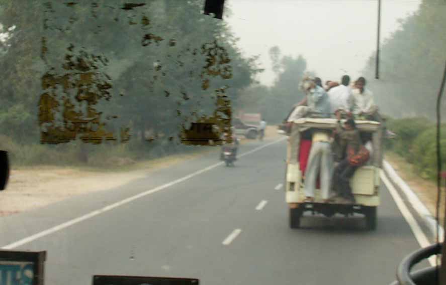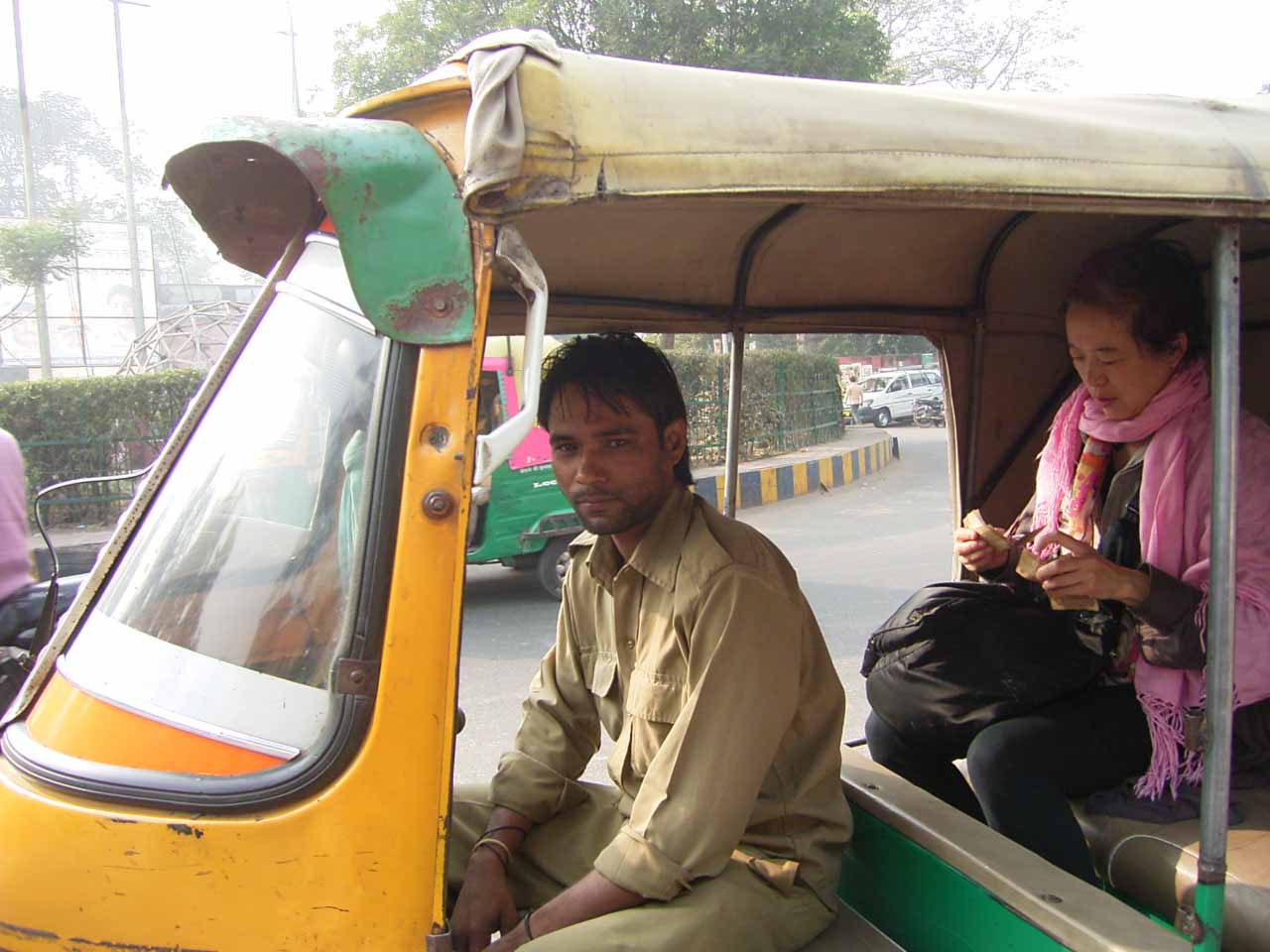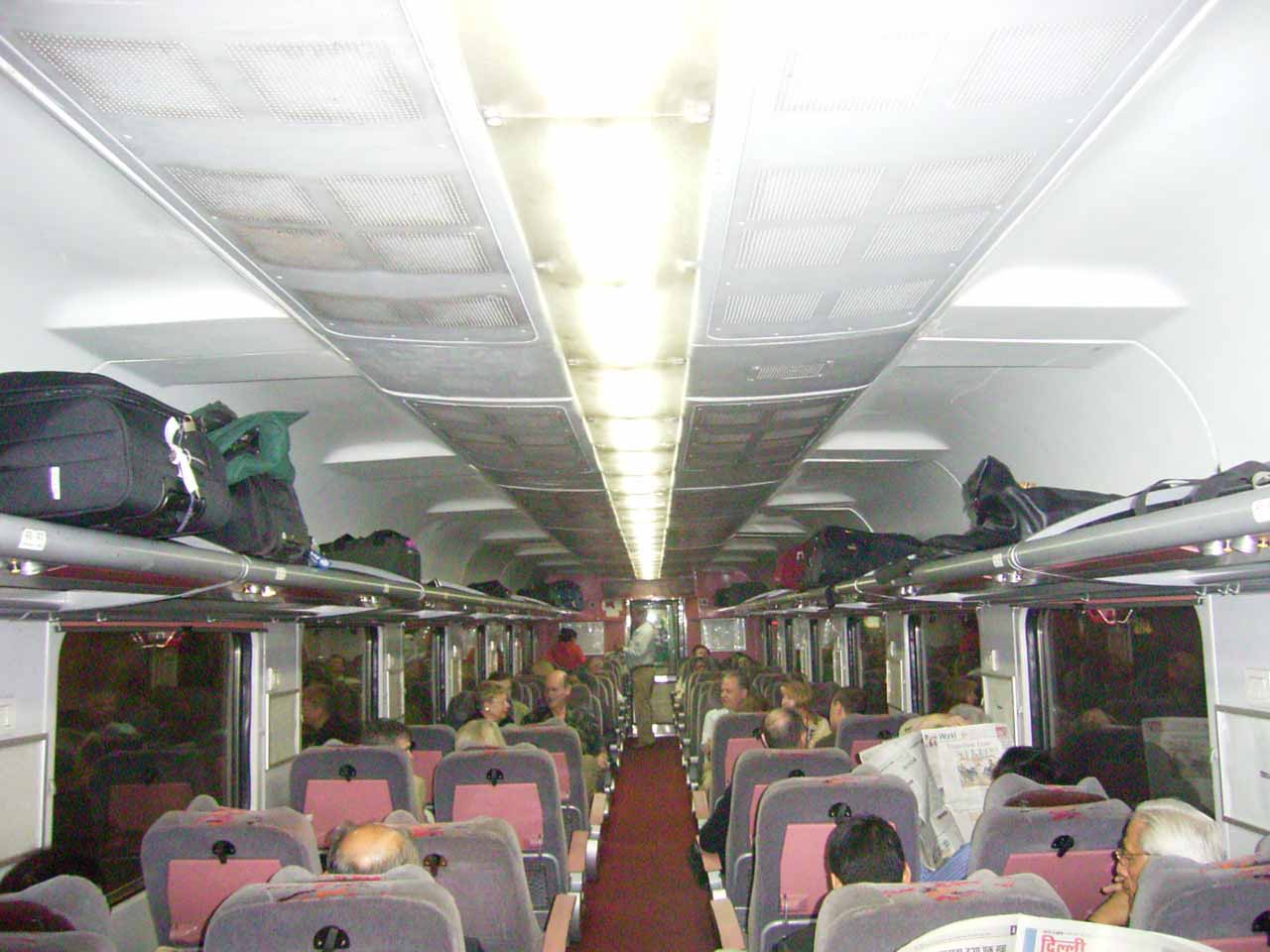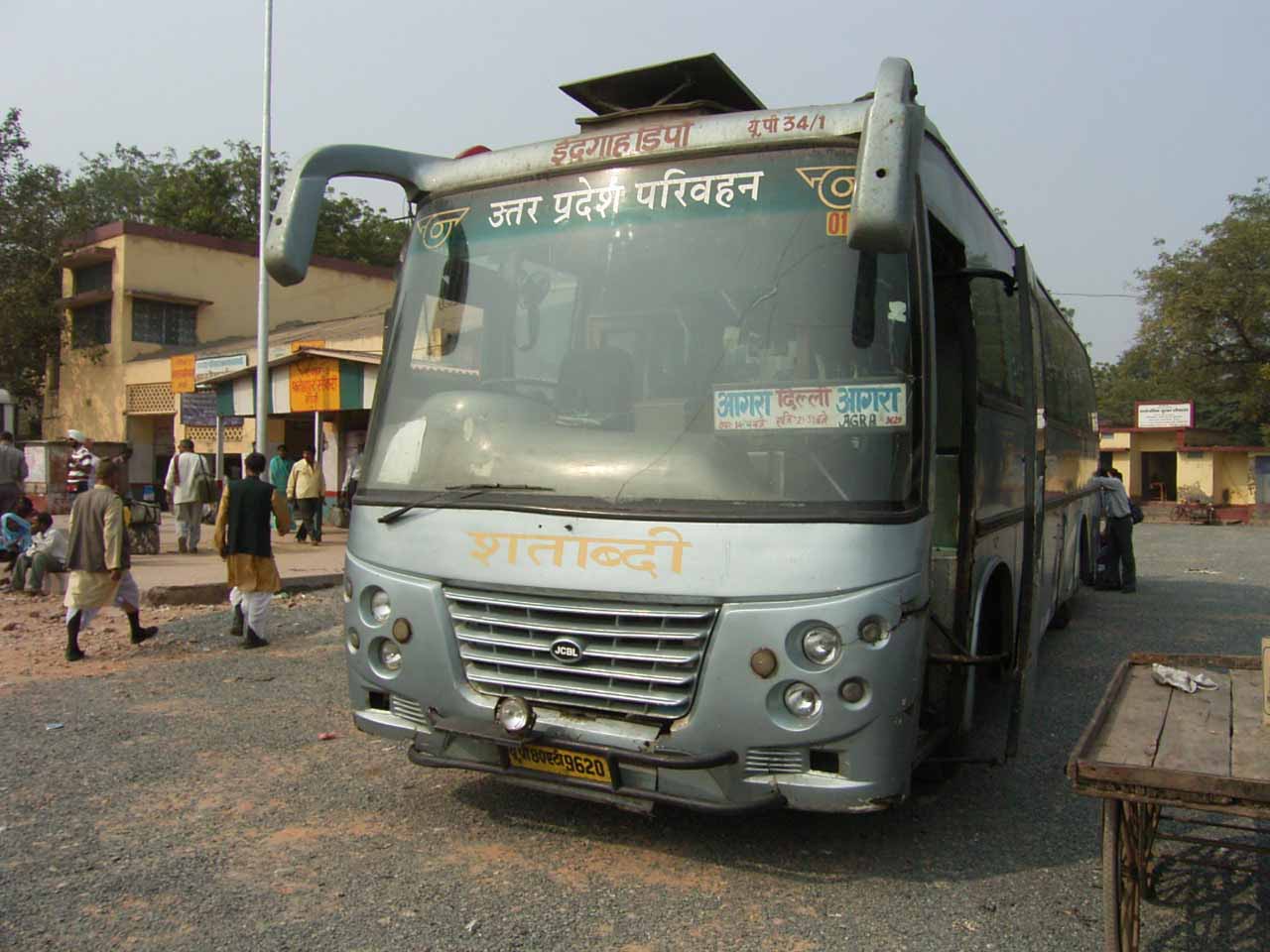 ホテルを出る。外は、まだ暗くて、店も屋台も無く人通りも少ないので駅への曲がり道を少し迷う。危険な感じは無い。![]() ![]() 1番ホーム しゃがんで歩く足の不自由な物乞いにびっくりした Train No 2002 BHOPAL SHTBDI デリー駅に無事到着。列車のホームは、ラジェンダさんが言っていたように1番ホーム。列車は、まだ来ない。駅は、撮影禁止のはずだが欧米人がバシバシとフラッシュを焚いて撮っているので、僕もカメラを取り出す。僕達のCoarchはE1だが、ホームの電光表示は"C"しかないのでホームの端まで行って探すが"E"は無い。延髄妻が”StationManeger”という表札の部屋に突撃し、恐らく副駅長に"E1のCoarchはどこですか?”と聞くと右に行くように言われる。駅の壁に貼ってある予約表のE1には僕達二人の名前があり、一安心。右に行くとアメリカとイタリアの団体客がいる。 ![]() ![]() 列車が到着。E1のCoarchにも、予約表が貼ってあり、名前あり。乗り込むと進行方向とは逆向きの座席。06:15発車...と思ったらすぐに停まり、06:20に再発車。延髄妻が”シートベルトは無いの?”と聞く。う〜ん、今までいろいろな国で電車に乗って一度もシートベルトのある電車はなかったのに...電車にシートベルトですか? ![]() ![]() 赤いターバンを巻いた征服姿の男性アテンダント二人が英字新聞を配り、その後列車には載せたがまだ入り口に置いたままのイタリア団体客の大きな荷物を空いている網棚にどんどん載せていく。しばらくすると、お湯の入った小さな魔法瓶とティーバッグ 2個とティー・カップとビスケットをサーブ。延髄妻は、ビスケットを見て”これがベジのブレック・ファーストかな?”と思ったらしい。バカか!お前は。今度は、500mlの水と紙コップがサーブ。 ![]() ![]() そして今度は朝食として、ミルク、コーンフレーク、薄い食パン 2枚、バター、ジャム、クロワッサンもどき(形はそうだが硬い)、揚げ物、バナナとお腹一杯になる。ここまでは、器を除菌シートで拭いていたが最後にジュースが出てきて、そのまま飲んでしまう。食事が終わり、トレイにティー・バッグを載せてサーブしに来るがそこには50Rsのお札があり、完全にチップを要求してくる。今までは、ディスポーザル手袋を付けてキビキビとサーブしていて好印象だったのに...仕方なく20Rs載せる。チップを払ったので、カメラで僕達を撮ってもらうがフラッシュを焚かなかったのでボケボケ。 ![]() ![]() 08:15 アーグラー着。出口には、団体客の大きなバッグがあり、すぐに出られない。アテンダントが荷物を降ろしているのにその間隙を突いて乗り込んで来るインド人。車内は降りる客が列を作っているので入れないし、座席指定なので急いで乗り込んでも一緒なのに...何故? ありエネー!仕方なく僕達も荷降ろしの間隙を縫って降りる。延髄妻が、バラナシで一緒だった男性から”アーグラーは最悪”という情報をINPUTされているため、駅を降りたらビビリまくりで、一刻も早く駅周辺から離れたいらしく、僕が写真を撮っていると”写真なんか撮ってないで早く行こうーッ!”と怒る延髄妻。 ![]() ![]() 奥の白い建物がAGRA CANTT駅 リキシャ,タクシーがいる 駅から少し歩くと店がある 駅構内を出ると、リキシャの運転手からの勧誘の声が襲いかかる。それほどしつこい勧誘ではないが、こういうのが嫌で嫌でしょうがない延髄妻は一刻も早く逃げ出したくて”あの外人の団体客の後を付いて行く。”と言う。付いて行っても、団体客はバスに乗っていなくなり、僕達は取り残されるだけなので、しばらく付いて行って勧誘のいなくなったところでタージ・マハル行きではなく、タージ・マハルから駅に戻る向きの道路の右側を歩く。この側なら、待ち構えている勧誘はいないはず。 ![]() ![]() タージ・マハルまで9kmの表示 牛車が3車線の真ん中を行く アーグラー・カント駅から、タージ・マハルまでは”地球の歩き方”の地図を見ると5kmくらいなので、歩いて1時間強で辿り着けるはずだし、道路標示もこんな感じで信じられないらしいという情報を元に歩いて向かう僕達。しかし、ここで驚異のストーカー・サイクル・リキシャが現れる。”タージ・マハルは、遠いから歩いては行けない。"とかいろいろと話し掛けてくるが無視する僕達。僕達は、車が来る方向とは逆向きで車道の脇を歩いているので、僕達に付いて来るリキシャは完全に進行方向とは逆に進んでいるが、そんなことはお構いなしに付かず離れずで話掛けて無視されると、距離を置いて付いて来たりとものすごいしつこさ。途中、タージ・マハルまでの距離の道路標示を撮っていると延髄妻が”写真ばっかり撮ってないで早く行ってヨ!”とキレて一人だけ早足で先に行ってしまう延髄妻。そして、その光景をサイクル・リキシャは見た!しばらくは、延髄妻とは距離を離れて歩いて行く。リキシャは、30分くらい付いて来たがさすがに諦めていなくなる。しつこければ、成功する訳ではなく状況判断が重要なんで