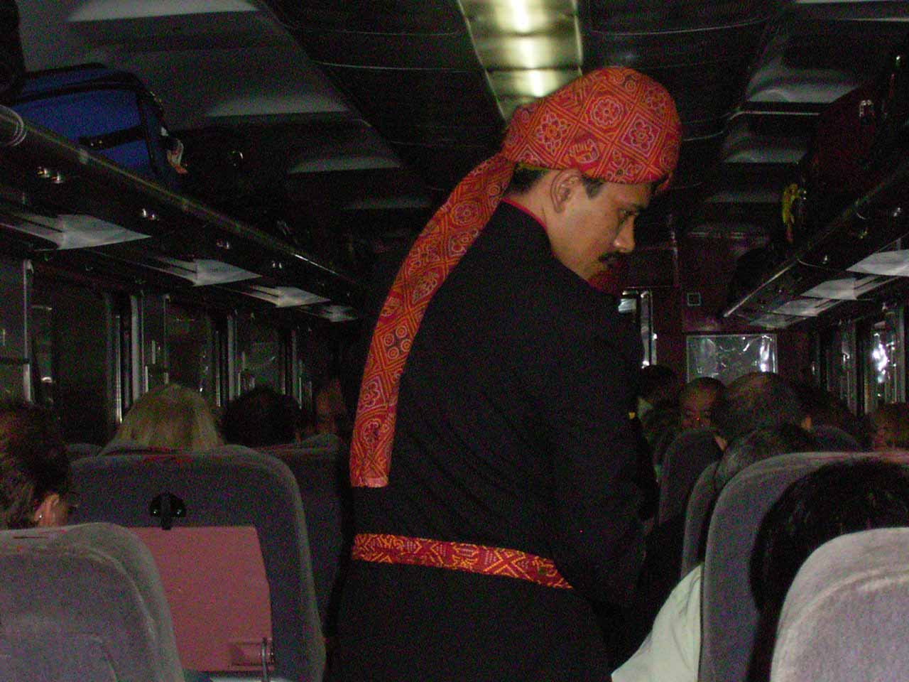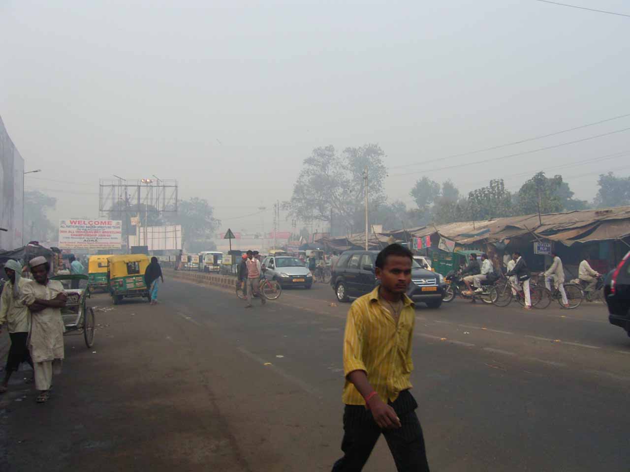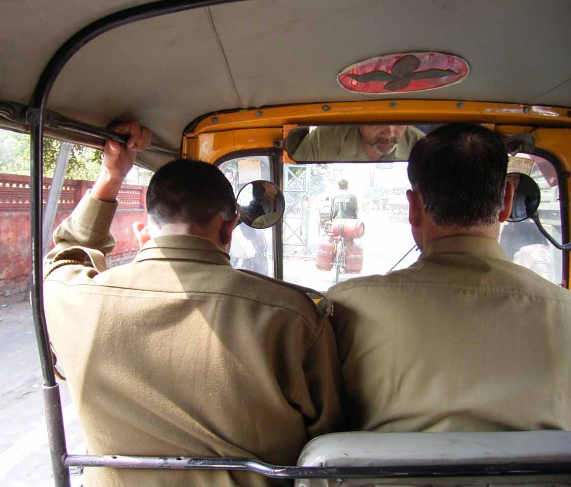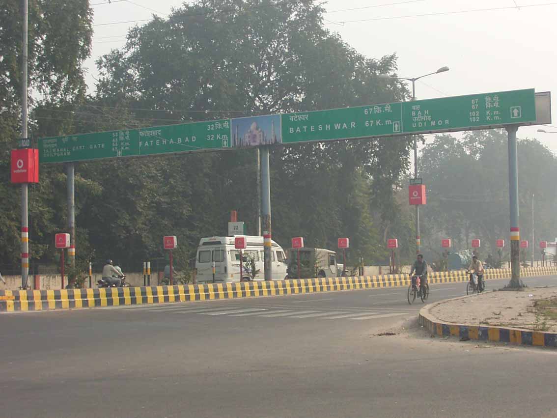 ホテルを出る。外は、まだ暗くて、店も屋台も無く人通りも少ないので駅への曲がり道を少し迷う。危険な感じは無い。![]() ![]() 1番ホーム しゃがんで歩く足の不自由な物乞いにびっくりした Train No 2002 BHOPAL SHTBDI デリー駅に無事到着。列車のホームは、ラジェンダさんが言っていたように1番ホーム。列車は、まだ来ない。駅は、撮影禁止のはずだが欧米人がバシバシとフラッシュを焚いて撮っているので、僕もカメラを取り出す。僕達のCoarchはE1だが、ホームの電光表示は"C"しかないのでホームの端まで行って探すが"E"は無い。延髄妻が”StationManeger”という表札の部屋に突撃し、恐らく副駅長に"E1のCoarchはどこですか?”と聞くと右に行くように言われる。駅の壁に貼ってある予約表のE1には僕達二人の名前があり、一安心。右に行くとアメリカとイタリアの団体客がいる。 ![]() ![]() 列車が到着。E1のCoarchにも、予約表が貼ってあり、名前あり。乗り込むと進行方向とは逆向きの座席。06:15発車...と思ったらすぐに停まり、06:20に再発車。延髄妻が”シートベルトは無いの?”と聞く。う〜ん、今までいろいろな国で電車に乗って一度もシートベルトのある電車はなかったのに...電車にシートベルトですか? ![]() ![]() 赤いターバンを巻いた征服姿の男性アテンダント二人が英字新聞を配り、その後列車には載せたがまだ入り口に置いたままのイタリア団体客の大きな荷物を空いている網棚にどんどん載せていく。しばらくすると、お湯の入った小さな魔法瓶とティーバッグ 2個とティー・カップとビスケットをサーブ。延髄妻は、ビスケットを見て”これがベジのブレック・ファーストかな?”と思ったらしい。バカか!お前は。今度は、500mlの水と紙コップがサーブ。 ![]() ![]() そして今度は朝食として、ミルク、コーンフレーク、薄い食パン 2枚、バター、ジャム、クロワッサンもどき(形はそうだが硬い)、揚げ物、バナナとお腹一杯になる。ここまでは、器を除菌シートで拭いていたが最後にジュースが出てきて、そのまま飲んでしまう。食事が終わり、トレイにティー・バッグを載せてサーブしに来るがそこには50Rsのお札があり、完全にチップを要求してくる。今までは、ディスポーザル手袋を付けてキビキビとサーブしていて好印象だったのに...仕方なく20Rs載せる。チップを払ったので、カメラで僕達を撮ってもらうがフラッシュを焚かなかったのでボケボケ。 ![]() ![]() 08:15 アーグラー着。出口には、団体客の大きなバッグがあり、すぐに出られない。アテンダントが荷物を降ろしているのにその間隙を突いて乗り込んで来るインド人。車内は降りる客が列を作っているので入れないし、座席指定なので急いで乗り込んでも一緒なのに...何故? ありエネー!仕方なく僕達も荷降ろしの間隙を縫って降りる。延髄妻が、バラナシで一緒だった男性から”アーグラーは最悪”という情報をINPUTされているため、駅を降りたらビビリまくりで、一刻も早く駅周辺から離れたいらしく、僕が写真を撮っていると”写真なんか撮ってないで早く行こうーッ!”と怒る延髄妻。 ![]() ![]() 奥の白い建物がAGRA CANTT駅 リキシャ,タクシーがいる 駅から少し歩くと店がある 駅構内を出ると、リキシャの運転手からの勧誘の声が襲いかかる。それほどしつこい勧誘ではないが、こういうのが嫌で嫌でしょうがない延髄妻は一刻も早く逃げ出したくて”あの外人の団体客の後を付いて行く。”と言う。付いて行っても、団体客はバスに乗っていなくなり、僕達は取り残されるだけなので、しばらく付いて行って勧誘のいなくなったところでタージ・マハル行きではなく、タージ・マハルから駅に戻る向きの道路の右側を歩く。この側なら、待ち構えている勧誘はいないはず。 ![]() ![]() タージ・マハルまで9kmの表示 牛車が3車線の真ん中を行く アーグラー・カント駅から、タージ・マハルまでは”地球の歩き方”の地図を見ると5kmくらいなので、歩いて1時間強で辿り着けるはずだし、道路標示もこんな感じで信じられないらしいという情報を元に歩いて向かう僕達。しかし、ここで驚異のストーカー・サイクル・リキシャが現れる。”タージ・マハルは、遠いから歩いては行けない。"とかいろいろと話し掛けてくるが無視する僕達。僕達は、車が来る方向とは逆向きで車道の脇を歩いているので、僕達に付いて来るリキシャは完全に進行方向とは逆に進んでいるが、そんなことはお構いなしに付かず離れずで話掛けて無視されると、距離を置いて付いて来たりとものすごいしつこさ。途中、タージ・マハルまでの距離の道路標示を撮っていると延髄妻が”写真ばっかり撮ってないで早く行ってヨ!”とキレて一人だけ早足で先に行ってしまう延髄妻。そして、その光景をサイクル・リキシャは見た!しばらくは、延髄妻とは距離を離れて歩いて行く。リキシャは、30分くらい付いて来たがさすがに諦めていなくなる。しつこければ、成功する訳ではなく状況判断が重要なんで