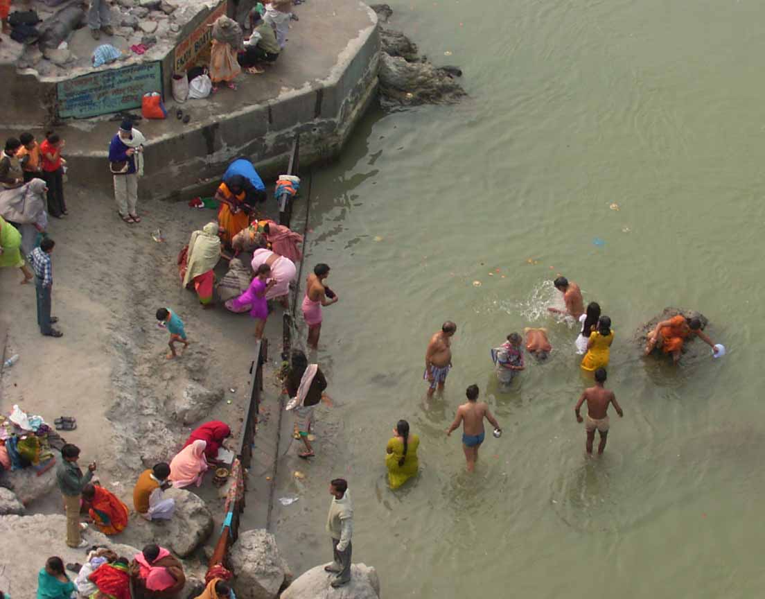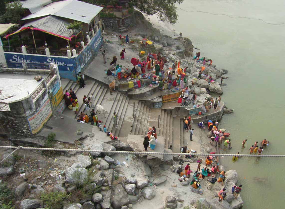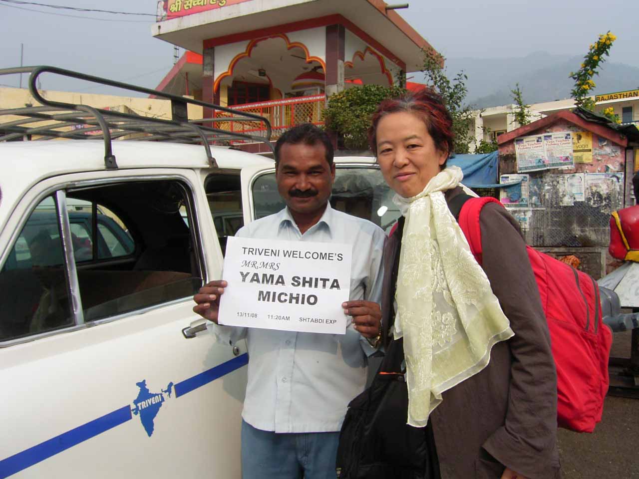 ![]() 今朝は、7:30〜9:00までヨーガ・ビギナークラスを受ける予定。7:25に教室に行くと、一人アジア系の若い女性。他は、欧米人の男女。一人太った白人女性もいる。合計 12人で開始。先生は、上下 白い服の髭を生やしたインド人男性。緩い太陽礼拝から、始まって頻繁にシャバアーサナを入れ、緩いポーズが続く。僕達は、それぞれ週に4回ヨーガをやっているのでこれなら楽勝。途中、”ハリ、ハリ、ハ〜リ・・・”という詠唱があり、最後は”オ〜ム、オ〜ム、シャンティ・・。”の詠唱で終わる。僕が受けている日本のヨーガクラスは、時間が1時間なので詠唱はないが、ここは1.5hrなので日本でやったことの無い詠唱があるが、まったく詠唱に興味のない僕。昨日の夜のカメラの充電池が切れて、写真が撮れなくなったが一晩休ませたおかげで、なんとかカメラが動き、最後は、先生と記念写真を撮ってもらう。この写真があるのと無いのでは大違い。まあ、とにかくこれで人には、"インドでヨーガをした。"と言える!デジカメ用乾電池(僕のデジカメは、単3電池も使える)とまだ、安全を見て僕がまだ普通に食事をしないので昼/夕食用のパンを買いに出る。 ![]() ![]() ホテルへの入り口には客待ちのジープがいる 寺院に入るためは朝から多くの人が履物を預けている リシュケーシュの朝は寒い。僕は寒くて、半袖Tシャツ 1枚,長袖Tシャツ 2枚,フリース長袖 1枚を着て出る。 ![]() ![]() しかし、ガンガーでは、沐浴している人々がいる。信仰の力。買い物を終え、僕は昨日の残りのバナナ半分とパン 1個とアクエリアスで朝食。チェックアウトは、フロントにキーを返すだけ。 ![]() ![]() やさしそうなドライバー 運転もまとも 右のサイドミラーは、畳んでいる 左は無い 送迎の車のいる場所に10:20頃に着くと、もう車がいる。昨日と同じインドの国民車のアンバサダー。ドライバーは、やさしそうなおじさん。運転も、昨日のドライバーと違い、かなりおとなしい運転。クラクションを鳴らす回数も極端に少ない。 ![]() ![]() チープな運転操作系 ラジェンダさんが頼んだ送迎の車を手配したTRAVENI TRAVELS 途中、昨日と同じように自分のオフィスへ立ち寄るドライバー。途中で、車が走っているのにスピードメーターは0km,水温計はLを指したまま。燃料計のメーターだけは生きている。これは、車を売るときに走行距離をごまかすためか? ハリドワールで車の前にいたかわいい姉妹 11:40 ハリドワールのSACHIN INTERNATIONAL HOTELに到着。フロントは、僕のパスポートを見るだけで、サインは無し。 ![]() ![]() ![]() これがインドの★★★(三ツ星)ホテルの部屋 部屋は、まあまあだがバスルームにプラステックのバケツは... ドライバーも付いて来て部屋を見せてくれる。まあまあの部屋。★★★のホテルだがインドにおける★★★。そのまま、部屋でしばらく休んでから、街に出るためフロントに鍵を預けようとするとパスポートを要求される。まさか、パスポートを要求されるとは思わなかったのですぐ出せるように持っていなかったため、モタモタしていると”後でもいい。”と言われる。どっちなんだ! 後だと面倒なので、今渡すとパスポートを見ながら、紙に記入しサインを要求される。次は、延髄妻。う〜ん、バラナシでもリシケーシュでも先の部屋を見せて休憩させてから、正式にチェックインするパターンが続いている。これがインド式?部屋のキーは、フロントのカウンターの上に並べて置いたままで、まったくキーを仕舞わない。外に出て、ハリ・キ・パイリー(Hari-ki-Pairi)ガードの方向に向かって歩く。車は少ないが、バイクとオート・リキシャの排ガスがひどいので、マスクを着けて歩く。思ったより、外人が少なくて誰もいない。僕達は、外人+マスクとかなり目立つはず。でも、マスクは必需品。しばらく歩くとオート・リキシャの数が減ってくる。途中で、左の曲がり角から多くの人がガンガーの傍に行くために真っ直ぐ右に行くので、僕達も右に曲がる。(後でわかったが左の曲がり角はマンサー・デーウ”ィー寺院に向かう参道なんで、人通りが多い。) ![]() ![]() 腕輪を買う延髄妻 ガンガーの水を持ち帰る容器を売る店 青いプラと真鍮製がある 延髄妻が、良さそうな雑貨屋で腕輪を4つ 25Rsで買う。安!この道は、オートリキシャが入ってこないので、排ガスが無く、気分がいいので、マスクを外す。川沿い(ただし、店があるのでガンガーは見えない。) の道を少し歩くとガンガー出現。帽子を手に持って、帽子の中の蛇を見せる人がいて、びっくりする延髄妻。 ![]() ![]() すごく人が多い。ガンガーの水を汲んで持ち帰るためのプラステックや真鍮の容器を売っている。 ![]() ![]() ガンガーの河の流れは、バラナシに比べて随分速い。少し河沿いを歩くと”ここからは、靴を脱いで下さい。”と言われる。ここは、なにかの寺院?川沿いでは先に進めないので上に行き、橋の上から写真を撮ろうとすると何か寺院関係者か、にせものかわか