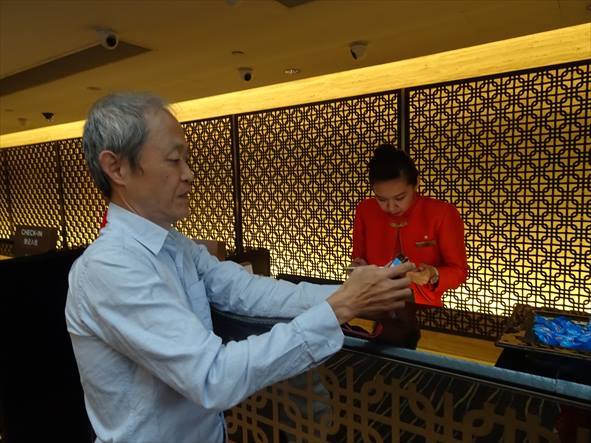 朝、6時過ぎに目覚ましで起きる。延髄妻が、“ビュッフェが開いたと同時に入っていくのが食べ物がきれいに揃っていて気持ちがいいので好き。“と言うので、ビュッフェへ。![]() ![]() ![]() ![]() ![]() ![]() ![]() ![]() ![]() ![]() ![]() ![]() ![]() ![]() ![]() ![]() ![]() ![]() ![]() ![]() ![]() ![]() ![]() ![]() ![]() 生野菜もあって、インド料理や中華もあって充実している。 ![]() ![]() 食後、昨日の夜にWiFiがつながらなかったのでフロントに行き、“WiFiの接続の仕方を書いた資料はありませんか?”と聞くがないと言う。 ![]() ”どんなデバイスですか?“と言うのでi-Padと言うと、”では私のi-Phoneでやり方をお見せします。“と言い、説明を受ける。しかし、説明は”ホテルのWiFiを選択し、その後Webでこのページを出して…”と言うので、”シンガポールのSIMが無いので、Webが開けません。”と言うと、”OK。私がやりますから、デバイスを持って来て下さい。”と言われ、後で持って行くことに。i-Pad,英語辞書用のi-Phone4Sとアンドロイドスマホ2台を持って再びフロントに行くと、さっき対応してくれた女性は別の客の対応中なので、別の女性に頼む。4台目のアンドロイドを出すと、“”WiFiは、3台までしか使えません。“と言うので、i-Phone4S(ダウンロードした有料辞書を購入しているので、ネットにつながっていなくても辞書が使えるが、実際には持ち歩いていない)をキャンセル。部屋に戻り、WiFi接続を確認。これでFacebookをアップ出来る。一休みして、エクスプローラーパスが使えるシンガポール動物園に行くことに。 ![]() ![]() ez-linkカードの残高が少ないので、Somerset駅でチャージ。最初は、5SG$チャージしようとしたが出来ず。MIN 10SG$。 ![]() ![]() ![]() ![]() ![]() ![]() チャージする手順をビデオで撮る。チャージは、海外では珍しい札が使える。カードの上書きは、吸い込まれるのではなく、トレイの上に載せる。画面表示は、チャージではなく、”Add Value”なので延髄妻はわからず。 ![]() ![]() ![]() ![]() ![]() 地下鉄で、乗り換えをしアン・モ・キオ駅(Ang Mo Kio)へ。 ![]() 延髄妻のNET情報では、“アン・モ・キオ駅から動物園は、距離があるのでTAXIで行きましょう。”とあるらしいが、“TAXIではおもしろくないので、ez-linkカードも使えるバスで行きます。“と延髄妻は言う。駅の外に出てみるが、どこにバス停があるかわからず。 ![]() 駅に戻り、係員に聞くと真直ぐ進んで、地下に降りて、再び上がったところ。 ![]() そして、英語で書いた小さなメモをくれる。係員の写真を撮ろうとすると、断られる。 ![]() 行くとすぐにバスが来る。 ![]() ![]() 30分くらい乗って動物園着。 ![]() ![]() ![]() エクスプローラーパスで入ろうとすると、”1,2番窓口でチケットに交換して下さい。”と言われる。 ![]() 1,2番窓口は、二人待ち。エクスプローラーパス以外にスマホでの入場も扱っているようだが、とにかく時間がかかる。ルーチンなのに、なんでこんなに時間がかかるのか?シンガポールらしくない。 ![]() 10:20 入園。動物園の展示?は、すごく自然で動物達もリラックスしている感じ。 ![]() ポケモンGOのMAPが、入り口を入ったすぐにある 植物や木が多いのに、何故か蚊が全然いない。シンガポールは、熱帯なので、蚊の対策が徹底しているのか? ![]() 珍しいホワイト・タイガー ![]() カバのいる池 水面下も、ガラス越しで見える ![]() クリーンなトイレ ![]() アシカ? オットセイ?のショーだが、着いた時にちょうど終わっていた ![]() 動物によっては、Feeding timeが書いてあり、猿の時間に偶然に合ったので、見たが男二人で、一人がマイクで説明、もう一人が小さなバケツに入ったバナナ等の餌を猿に渡すだけ。 ![]() 餌の量が少ないので、2〜3分で終わる。イマイチ。 ![]() オラウータン?との記念写真 ![]() まったく動かないオラウータン?を嬉しそうに観る延髄妻 ![]() ![]() 白熊がいる展示 観るエリアは、屋内で強い冷房が入っている ![]() ![]() ![]() 変わったデザインのトイレ ![]() ![]() Ang Mo Kioと書いてあるのに、待っている客に聞く延髄妻 ![]() ![]() かなり、広く全部回ると時間がかかるので、11:40に途中で出て、バスで再び12:37アン・モ・キオ駅に戻る。次はエクスプローラーパスで、5SG$のバウチャーが貰えるチャイナ・タウンのフードストリートへ昼食を食べに向かう。 ![]() MRTでチャイナ・タウン駅着。 ![]() ![]() ![]() 外に出て少し歩くと、カメラ/電気屋があったので、コンセントアダプタがあるかを聞くと、“ある”とのこと。箱に入っていない裸のコンセント・アダプタを持って来て、“15SG$”と言う。”ヤケに高いな!“と思ったが、他の店を探すのも、時間がもったいないし、金額も大した金額ではないので、クレジットで買おうとすると、”“キャッシュ”と言われる。僕の持っているSONYの普通のコンパクトカメラが何故か珍しいようで、“見せて下さい。”と言うので、渡すと電池を取り外しだし、“このカメラの電池の容量は、ここに書いてあるように、少ない。ここにも