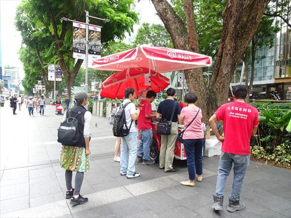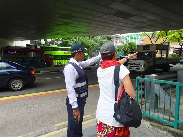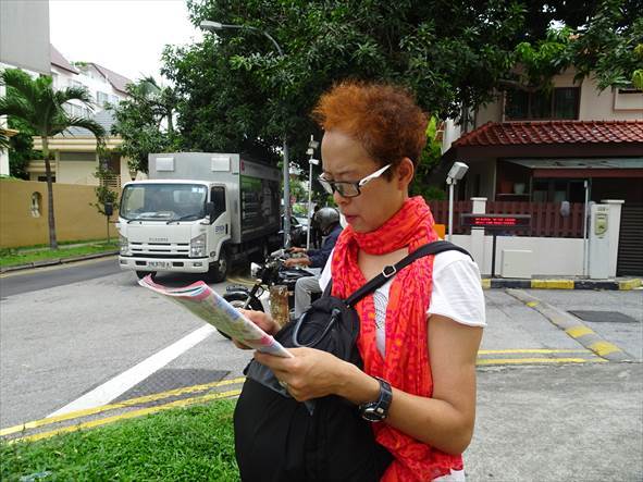 今日は、F1が無いので、SIAのバスがホテルにピックアップに来る21:30までかなり時間があるので、遅めの朝食。今日は、延髄妻の希望で、行きたい店のあるアラブ・ストリートと中国とマレーの文化をミックスしたプラナカン建築のあるカトン地区に行くことに。![]() ![]() Sing$への両替をするため、Orchardの両替商の集まるビルで両替商を探す 両替商と思ったら送金しか出来ない ![]() SEVEN-ELEVENの中に、両替商が...と思ったら、入り口の外の別店舗 ![]() 無事、両替が出来た ![]() ![]() Macの店舗の外の歩道に、路上のMacの店舗がある MRTを乗り継いで、ブギス(Bugis)駅に。 ![]() ![]() MRTの車内には、"No durians" という表示が サルタン・モスクのある辺りが、アラブ・ストリートらしいが、ガイド本には地図が無いと言うので、延髄妻が人に聞いて向かう。 ![]() ![]() 何人かに聞くが、わからないと言われ困り果てる延髄妻。大きな交差点で、僕がガイド本を見てみると、アラブ・ストリートにある延髄妻が行きたい店の紹介ページに参照する地図の番号と位置が記載してあるのを見つける。 ![]() 地図を見て、場所がわかったので歩いて向かうと、大きなモスクが見えて来てアラブ・ストリート着。 ![]() サルタン・モスクの中は、無料で見学出来るようなので、靴を脱いでモスクの入り口に向かうと、入り口にいるおじさんから、長いスカートのようなものを延髄妻に渡す。延髄妻が、穿くのかと思ったらバミューダを履いている僕に穿くようにおじさんに言われる。 ![]() ![]() 中に入ると、二人の男性がお祈りをしている。中は、あまり大したことはないので、5分くらいで出る。 ![]() モスクの前は、観光客?向けの店のある通りがあり、そこに延髄妻の行きたい店がある。 ![]() 僕は、まったく興味がないので 延髄妻が店の中にいる間は、外で待つ。(店が狭いのもあり) 延髄妻は、20SG$のネックレスを買う。 ![]() ![]() ![]() 買った後、近くを散策するが、あまりめぼしい店がないので、カトン地区に向かう。パヤ・レバー(Paya Lebar)駅着。カトン地区の地図はあるが、MRTの駅から少しあるようでMRTの駅が地図に載っておらず、車道にパヤ・レバー駅に通じるという記述が地図にあるだけなので、どう行けばいいか、まったくわからない。駅の構内に、付近の地図があったので参考にするためにカメラで撮ったが、いざ見てみるとカメラの画面が小さくてまったくわからない…。取りあえず目ぼしい出口から出て、勘で歩き出す。すると、目の前に本を持った白人カップルが歩いていたので、観光客かも?と思い、取りあえず後を付いて歩く。大きな商業ビルのある交差点に着く。この辺りの可能性があるので、現地の男性にカトン地区を聞くがわからず。別の男性にガイド本の地図のJoe chiat RdとKoon Seng Rdの交差した点を指差して聞くと、指差したところはわからないが今居るところの真向かいにある“Joe chiat Complex”というビルを地図で見つけてくれる。これで、今いる場所がわかった!地図上の位置がわかったので、延髄妻の行きたいカトン地区に向かう。途中、地図にあるFood Centreがある。(後で、調べるとこれが勘違い。地図には、ローカル・フードの店としか書いていない。) お昼なので混んでいて並んでいる店もある。地図に従い更に歩くが途中にあるべき店やレストランが無く歩いてもカトン地区が着けない。 ![]() 少し戻り延髄妻が、勘で適当に道を折れるが、もちろんそんな方法では見つかるはずが無い。さっきのFood Centreの近くまでいったん戻る。延髄妻が近くの商業ビルの中に入り、店の男性に”“ルビー・ビビ(カトン地区にある店)には、どう行けばいいですか?”と聞くと、“その店は、知っている!”と言い、わざわざビルの外に出て、“前の道を左に曲がり、信号を二つ越えてから、右?左?(どちらか覚えていない)に曲がるように。歩いて行くと、すごく遠い。”と言われる。しかし、地図上では、そんな方向に店は無い...。歩き出すが、片側1車線のそれほど交通量の多い道路ではなく、この道に交差する道は、ほとんど車が走らない脇道なので、10分近く歩いても信号ひとつ無い。地図上の位置もわからず、このまま歩き続けても時間の目処もつかないし、サンダルで歩くのも疲れてきたので立ち止まり、延髄妻に“もう、諦めて行くのは止めよう。”と言うと、延髄妻が“それなら、ミッチャンはここにいて。私一人行って来る!”と言い、一人で行ってしまう延髄妻、時間は13:20。少し時間が経ってから、“二人が別々になるのは、止めるべきだった。”と後悔する僕。13:30 延髄妻が小走りで帰って来る。意外と早く帰って来て安心する僕。 延髄妻によると、先に進んでも見つかりそうになかったので戻って来たとのこと。 ![]() 延髄妻が、お腹が空いたのでさっきのFood Centreで昼食を食べることにする。13:50頃なので、お客の数も減り 長い列は無く 売り切れたのか、閉まっている店もある。 ![]() 行きに見た行列が出来ていた店をひとつだけ記