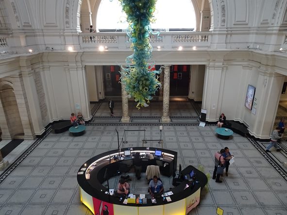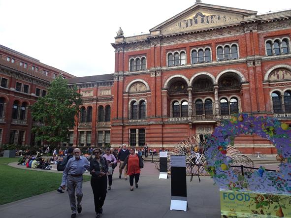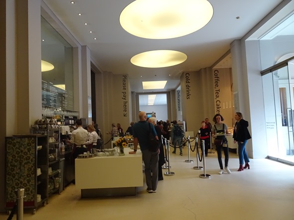 地下道で、入り口を見つけ、延髄妻の言う通り、検査無しで博物館の中に入る。 すると、今 ”MARY QUANT”展をやっている。僕は、”MARY QUANT”をまったく知らないが、今 85歳のイギリスの有名な女性デザイナーらしく、日本中に100店舗以上の店がある。僕は、まったく興味が無いので、延髄妻だけ12ポンドの入場料で観覧。僕は、その間 博物館の展示を見ながら、ブラブラと時間を潰す。 虎が、人間を襲っている人形 最初は、全館見ようと思ったが、ヨーロッパの展示は知識もなく、ただナゾッただけになるので、途中で日本関係の展示に向かう。 日本関係の展示は、昔の鎧兜や着物、浮世絵、陶器等があるが、昔のだけでなく、現代の展示もあり、もの凄くシャープな陶器や、西武鉄道の浮世絵風に書いた駅構内や電車内の迷惑行為の啓発用ポスターや、Walkman、ギャルのロリータ服が展示してあって面白い。 Forest Dewa Eri (born 1983) 若い! Forms in Succession Nagase Shigekazu (born 1953) 西武鉄道の車内や構内の迷惑行為への啓発ポスター ワープロ、ウォークマン、ケイタイが展示 ギャルの服や、炊飯器、掃除機そして椅子 アジア系では、中国の展示が大きく1Fに、韓国も1Fにあるが、廊下の片隅で狭い。日本は上のフロアで、独立した部屋で展示されている。 まだ、時間があるので 大きなフロアの巨大な展示を見る。 こんな巨大な柱をどうやって運んだのだろう これらは、昔 大英帝国時代に、ローマやギリシャ等から盗んで来たのかな?と思う。 精緻な像が、これでもかと展示されている 受付 上部にガラスの造形物があるが、落ちると近い ”MARY QUANT”展の近くの巨大な部屋に、何か特別展示がある。 入り口 奥にある入口に立っている人の大きさと比べるとスクリーンの大きさがわかる これも、奥にある入り口に立っている人の大きさが小さい 中に入るととんでもなく巨大なスクリーン(今まで見たスクリーンで最大!スマホで動画を撮って見ると、実写を撮影したように見える)に建物、部屋や住人の映像が流れている。DO HO SUH(ス・ドホ)という韓国のアーティストの作品 ”ROBIN HOOD GARDENS”。ROBIN HOOD GARDENSという取り壊される古いアパートメントと住人、部屋を、パノラマフィルムやドローン、タイムラプス、3Dスキャン等の数々の映像技術を駆使して、撮影し、再構築しているビデオ作品。 これが、かなり素晴らしく大変気に入りました!こういう映像作品は、普通、作者は作品にいろいろと理屈を付けているが、作品自体は、ただ撮影しただけで”何これ?”ということが多く、まったく鑑賞に耐えないことが多いが、これはまったく飽きない。結局 2回観ました。日本でも、たまに展示しているようなので、チャンスがあれば観に行きたい。延髄妻と合流。延髄妻は、今度はこのV&A Cafeに行きたいと言う。 奥が、博物館 Cafeとの間に庭がある こういう所で、食べ物や飲み物を買う(他に場所にもある) ここは、Hot Mealsを売っている ここには、Morris roomというWilliam Morrisがデザインした部屋があって、延髄妻はお茶(意外と安いらしい)をしたかったらしいが、ちょうどお昼時で人手がすごいので、諦める。 正面から入ると、セキュリティチェックがある 正面入口 次は、JAPAN HOUSE。ここは、塩之谷さんが大好きな安野光雅の原画展をやっているのを見つけ9/8に観に行って凄く良かったので、塩之谷さんのお勧めで僕達も行くことに。まだ、時間があるので歩いて向かう 約23分。 途中、レンタル自転車が大量に停車していた 交差点の歩道には、車が来る方向を地面に書いてある 右の車用の信号は、赤以外は 横方向の板越しに見るようになっていて誤認防止 JAPAN HOUSEの近くにまで来ると、何とWhole Foodsがある。アメリカのNYやハワイで部屋食を買うのに、お世話になったアメリカのスーパーマーケット。 居酒屋 "SUSHI & ROBATA" Bone Daddiesというラーメン店 sushi riceのカレー、マジですか? 店内は、いつものWhole Foods、2Fに”SUSHI AND ROBATA”という居酒屋と、”Bone Daddies”という"Nobu"で修行したオーストラリア人が始めた有名なラーメン屋もある。MENUには”EDAMAME” ”AGEDASHI TOFU” ”CHASHU PORK” ”MISO AUBERGINE(茄子)” ”FRIED CHICKEN NANBAN” ”KATSU CURRY” ”TONKOTSU” ”YUZU” ”TANTANMEN” ”KARA-AGE TOFU” ”SHITAKE” ”MIZUNA” ”NORI” ”MOCHI ICE”と日本語が並ぶ(一部 英語の説明あり)。でも、2店ともに、キムチがMenuにある。しかし、恐らく韓国ではなく、日本のMenuと認識されるのでは?次は、JAPAN HOUSE LONDON。JAPAN HOUSEは、このロンドンの他に、ロサンゼルス、サンパウロにあるらしい。 JAPAN HOUSE 外壁は、改装中で見えず JAPAN HOUSE 結構面白い。1Fには ショップ、和室、ライブラリー、レストラン、バー、カフェ、地下にはギャラリー、ホールがある。 ここは、たしかCafe 高級感溢れる店内 日本を代表する高級品を売っている MARUNAOという箸メーカー 知らなかった。 ショップには、日本を代表する高級品が展示されていて、値段は日本でも高いのにロンドンに輸出されているので、