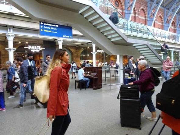 Premier Inn London Kingscross フロンドのあるロビーは、吹き抜けになっている ホテルの朝食は、ブッフェ。 延髄妻が、写真を撮るとボケる 海外に来ると、だいたいホテルのブッフェでドカ食いをして、昼食抜きのパターンが多いが、今回も同じ。日本から、”コップのフチ子”を持参して コーヒーをサーブしてもらう時にコーヒーカップに乗せて、受けようと考えていたが、コーヒーがセルフだったので出来ず。 今日は、まずSIM CARDを買うのが最初にやるべきこと。僕達は、MVNOのモバイルONEなので、アマゾンやムスビーでSIMロック解除してある白ロムのdocomoスマホ(僕は、Galaxy S8、延髄妻は、Galaxy Note8)を買っていてる。SIMロック解除なので、海外でSIM CARDを差し替えれば使えるはず。今までの海外旅行は、屋外はスマホ無しだったが、今回 初めてSIM CARDを海外で買うことにする。ホテルのWiFiに繋げて、ホテルに一番近い店が、Camden Townにある"Three"というキャリアの店なので、アンダーグラウンドで向かう。Kingscross駅から、Camden Townまでは、Nothern Lineで2駅と近い。ホテルのWiFiでGoogle MAPで行き方を調べていたので、スマホに電波が繋がっていなくても、地図データが出てくるので迷うこと無く”three”には2〜3分で到着。 ロンドンには、7泊8日しかいないので、最も安い30日間1GB 10ポンド(約1,300円)のSIMを購入。 店員が、ケースを外してSIMを差し替えてくれる。設定も、してもらうつもりでスマホを英語設定に出来るように準備して行ったが、店員が、”設定は簡単。SMSにテキストメッセージが2通届くから、2通 届いたらスマホを再起動すれば終わり。”と言われる。言われた通り、再起動するとOK。今は、こんなに簡単なんだ。 せっかく、Camden Town(延髄妻も、予備知識無し)に来たので、近くを散策。少し歩くと川幅は狭いが運河がある! 小さくて、わかりにくいが 船の近くの河の左岸を歩いている人が、 運河の開閉をしていた人で、係員か、船の人かは、不明 そして、船がいて、係員?か、船員が運河の堰の開け締めをしている。なかなかいいものが見れた。運河を見ている橋のすぐ傍にスタバがあり、店内から 大声を出して店員に対して怒鳴りながら文句を言っている中年男が出てくる。それを見てビビる延髄妻。スタバから、離れても怒りが収まらず、頭を硬い壁に叩きつけた後、頭を痛がる中年男。バカじゃないの?運河の傍に、いろいろなフード店がある。 "KATSU HOUSE"という日本の”カツ”を売っている店もある。この後、ロンドンで”KATSU”という単語はあちこちで見かけ、完全に定着している。 さらに進むと小さなビルがあり、中に入ると延髄妻の好きなアクセサリーが一杯ある。 僕は、買い物には一切興味がないので、外で待ち、延髄妻がアクセサリーを物色。 こんな店もある 店の右前には、いろいろな味のポッキーがある 延髄妻のすごく気に入ったアクセサリーの店があり、10ポンドのペンダントを買い、気の合った店員と記念写真を撮る延髄妻。(この日は、気が付かなかったが、ここは1,000店以上の店が集まった巨大な商業施設であることを、再訪した時に気付く。) ![]() 珍しく、まともな笑顔をしている僕 Camden Town駅に戻る途中、髪の毛をピンピンに尖らせたパンクのニイチャンが路上でギターを弾いている。 更に進むと、駅前ではマジックをしている男性。マジックを嬉しそうに見る延髄妻。ロンドン、楽しい!次は、延髄妻が行きたいという”世界で一番美しい本屋”と言うMarylebone(メリルボーン)ハイストリート沿いにある”DAUNT BOOKS”。早速、スマホのgoogle MAPで検索。便利!ロンドンでも、行き先をカタカナ入力すれば、出てくるのですごく楽。Camden Town駅から、Northen LineでWarren Street駅(3駅)まで行き、そこからバスで3駅。 トンネルが、丸いので 列車も上部が丸くなっている とにかく車内が狭い 駅に必ずある Heip Point 暴漢なら、間に合わない アンダーグラウンドのホームで、Northen Lineが2系統あるので どの行き先の乗ればいいか、迷っていると、英国紳士が聞きに来てくれて、次に来るアンダーグラウンドに乗ればいいことを、親切に教えてくれる。嬉しい!たしか、17年前のロンドンでも、親切に教えてもらった、ロンドン 印象良し! Warren Street駅 到着。ここから、本屋まで歩いて17分なので、バスに乗らず歩いて向かう。本屋到着。 中に入るが、まあ別にそれほど大したことはない。延髄妻はここのトートバッグがお目当てだったらしいが、結局 何も買わずにすぐに出る。せっかく来たのに、なんじゃそれ。 延髄妻が、”今日は風が強くて少し寒い。”と言うので、 バス(7駅)でホテルに戻ることにする。 延髄妻は、バスや電車で当て所無く ただ窓から景色を観るのが、大好きなので、アンダーグラウンドよりは、バスや歩きが好き。 バスの1F 右に見えるのは、2Fへの階段 バスの2F 一番前が、もちろん見晴らしがいい St.pancras駅 この地下に駅がある 地上階はホテル King's Cross St.Pancras駅に到着。昨日の夜は、夜食を買いに