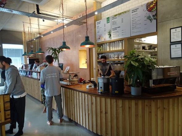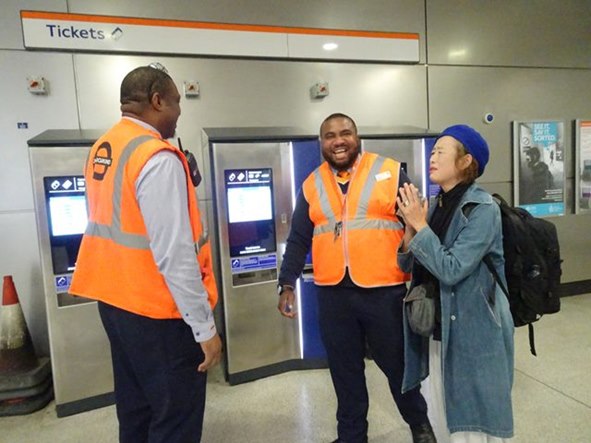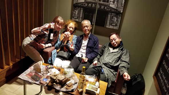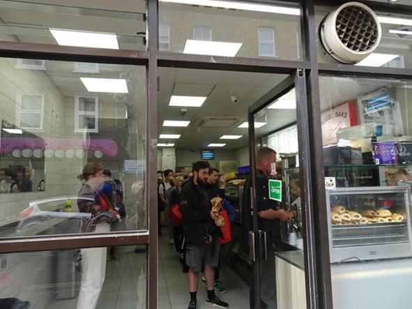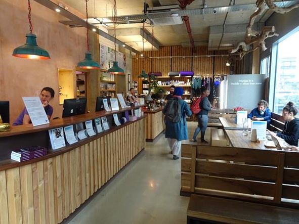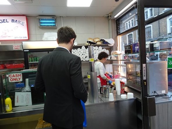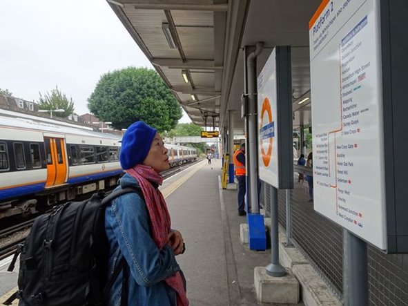 Hackneyへ移動。ここは、昨日から森山さん、塩之谷さん、フヂモリさんが泊まっている。 延髄妻は、こういう駅名の表示と一緒に撮るのが好き King's Cross Pancras駅から、Victoria LineでHighbury&Islington駅まで1駅。 Highbury&Islington駅で、Dalston Junctionを指差す延髄妻 platform1,2のどちらも利用可能 オーバーグランドに乗り換えて、Dalston Junction駅まで2駅。 Highbury&Islington駅のプラットフォームの1と2がどちらも利用可能。 ホームでも、確認する心配性の延髄妻 2に電車が先に着いたので、2に行くが、人々が1に電車が着くと1に向かうので、僕達もプラットホーム1へ移動し、電車に乗り込む。 延髄妻が、Dalston Junction駅に行くかどうか不安になり乗客に聞きOK。 Dalston Junction駅に到着 自転車も、乗れる Dalston Junction駅に着き、オイスターカードの残高を延髄妻が確認する。17ポンド。 そして、駅を出ると、偶然森山さん達とバッタリ出会う!すごい偶然!びっくり! これから、二階建ての観光バスでも乗ろうかとホテルを出たところ。 駅に戻り、延髄妻が、森山さん達に、自販機でのオイスターカードの買い方を教える。そして、延髄妻が、残高の確認の仕方を教えるため 自分のオイスターカードを当てると、何と残高ゼロ!となり、びっくりする延髄妻。これは僕達の問題なので、森山さん達を見送った後、延髄妻が駅の係員に話しに行く。お金が絡むと、英語が喋れなくても自分で突撃する延髄妻。二人のガタイの大きな黒人が来て、暇潰しも兼ねて色々やってくれる。カードの履歴を見ると、”refund”(払い戻し) したことになっている。しかし、延髄妻は、”そんなことはやってない。”と主張。色々と調べてくれるが分からず。 僕が、”お前、本当は、自分のカード持ってるんじゃないの?”と言って、確認させると自分のオイスターカードがある。残高を確認するとちゃんと17ポンド。結局、塩之谷さんが、買った時に、何故かカードが2枚出てきて(実際は、誰かがrefundしかカードを自販機に残したままだった模様)、その1枚を延髄妻が受け取ったのを、忘れて自分のカードだと思い込んだのが原因。馬鹿じゃないの、延髄妻。 係員に謝る延髄妻 ホテルに向かう。ホテルの中に入ろうとすると入り口の自動ドアが開かない。インターフォンのブザー押してドアを開けてもらい、リュックを預ける。この時は、チェックイン時間より、早いのでドアが開いていないと思ったが、後で 24時間 カードキーが無いと開かないことを知る。どうやら、この辺りは治安が悪いので、ドアを開放していない模様。更に、後日 塩之谷さんの知り合いのロンドン在住の医者の勤務する病院の看護婦が、夜勤で帰る時は、一人だと危険なので、医者が車で家まで送っているという話も聞く。なかなか、タフなエリア...。 外に出ると向こうから佐藤允彦さんと上杉亜希子さんが歩いている。佐藤さんは、森山さんと一緒にペーター・ ブロッツマンと共演するため、ロンドンに来ている。僕とは面識はない(僕は、勿論 JAZZ Musicianとしては、知っている)が、外に出て少し追いかけて、”森山さんの追っかけで来ました。”と挨拶をする。cafe OTOの場所を確認した後、 延髄妻が行きたいと言うShoreditchに向かう。 ここに延髄妻が選んだヨガスタジオがあると言うので見に行く。 Yoga studio "tri yoga" 大きなチェーン店らしい 左がフロント、右が飲食スペース 靴を脱いでいる フロントの奥に、カフェがある なかなかきれいなヨガスタジオ。フロントにコーヒー等と飲めるスペースがあることが、外からガラス越しに見える。外に、class scheduleがあったので、それを見て、明日の12:30からのlevel.1(4つあるlevelの下から、2つ目)のクラスに決め、中に入って行く。明日のヨガのことを聞くと”部屋が小さく、少人数なので予約しますか?”と聞かれ、予約する。Drop inは1回17ポンド、2回なら20ポンド、どちらにしますか?”と聞かれて、”一回でいいです。”と答える。 クレジットでの支払いが終わり、延髄妻がヨガウエアが見たいと言うので奥に向かっていく。そこは靴を脱いで入っていくエリアだったので、延髄妻に靴を脱ぐように言う僕。外国に行くと、必ずやる二つの事、@ヨガ そして、A僕が床屋で散髪。床屋は、この辺りをぶらぶら散歩すれば、すぐ見つかると思ったが、見つからず。スマホで、検索し 近くにあることがわかり、向かおうと少し歩き出すと、延髄妻が、”あっ!あのベーグル屋だ!”と言う。 観光本に載っている有名なベーグル屋”Beigel Bake”らしい。 たしかに、店の中は 買うためにお客が並んでいる。床屋の後、寄って買うことにする。5分ぐらいで、床屋に着く。 なかなかおしゃれな床屋。かなり良さそうだが、とりあえずもう1店を検索してここと比較することにする。もう1店も、すぐ傍にある。しかし、ここは、ラップの曲がかかる黒い内装の床屋で、イマイチで、さっきの店の方が断然良いので戻る。さっき覗いた時は、お客 2人を、理髪師2人で髪の毛を切っていて